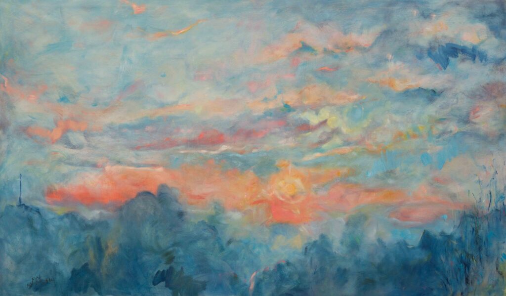 In a golden haze where memory and myth dissolve, Kristjan Juusu’s After Leonardo’s Visit about 17 Months Ago unfolds as a visionary dialogue with art history itself. A field of honeyed yellows and trembling pinks breathes with surreal vitality — both maternal and divine, earthly and celestial.